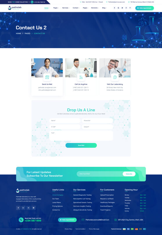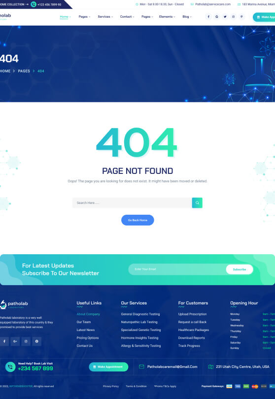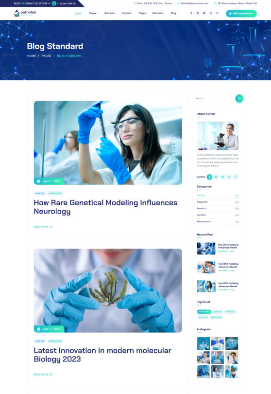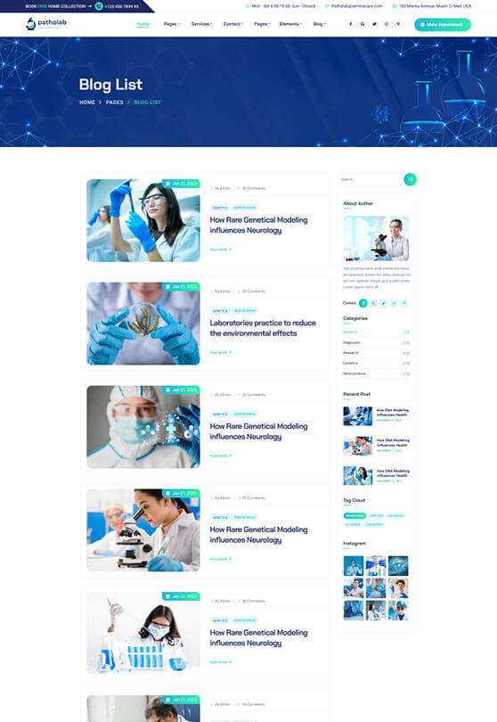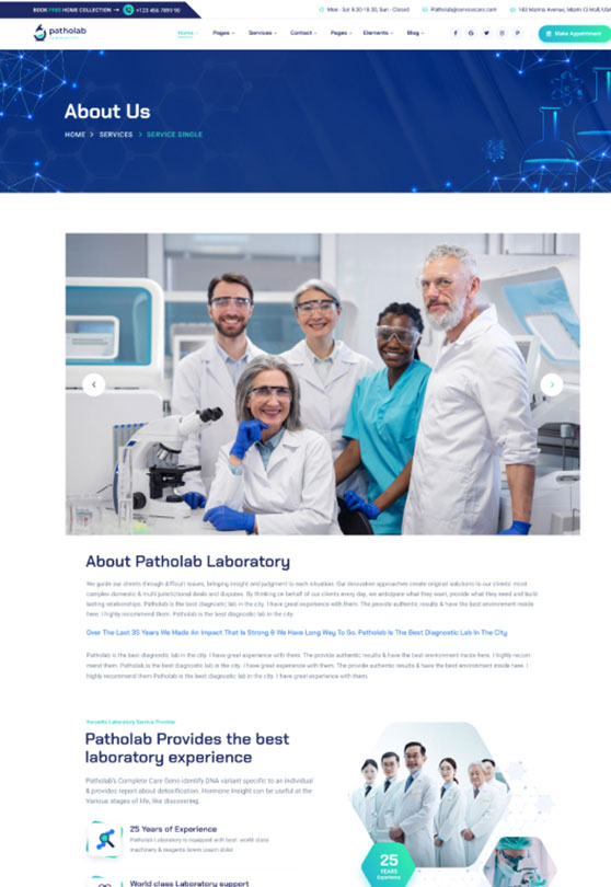 Patholab’s provides organized layouts of a complete laboratory website where main focus is providing=ready to use content