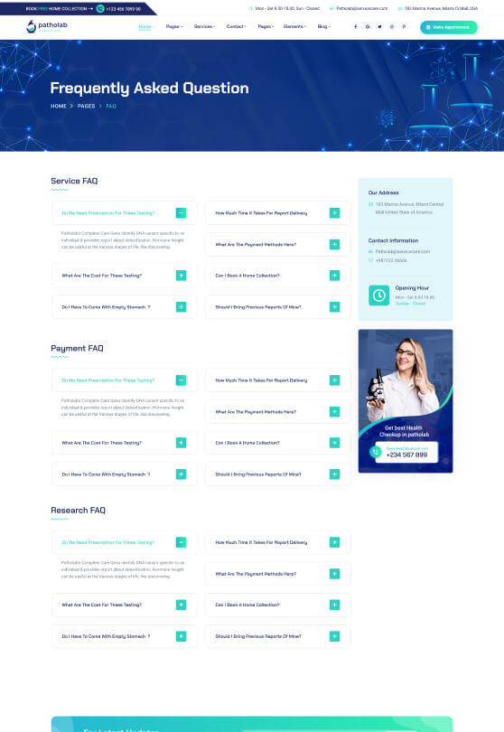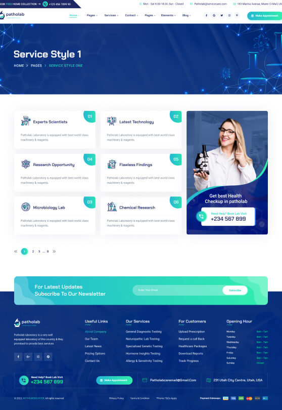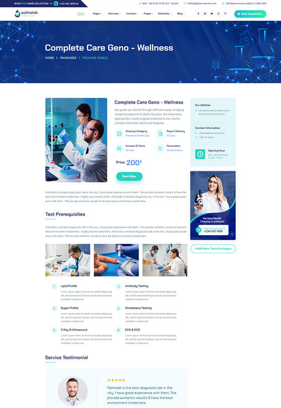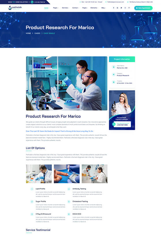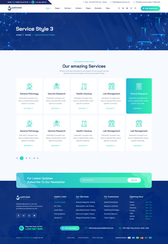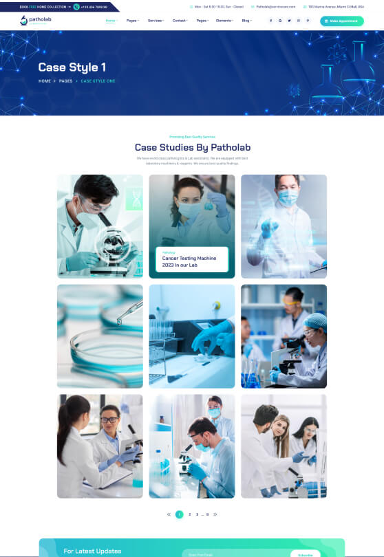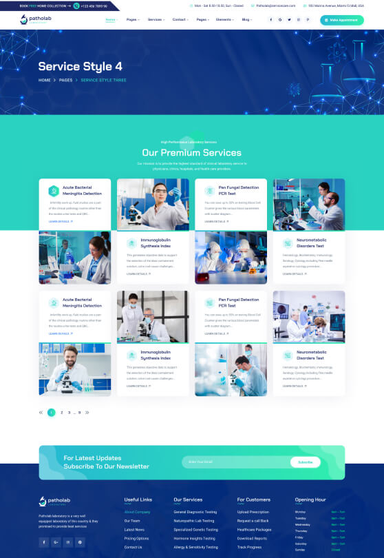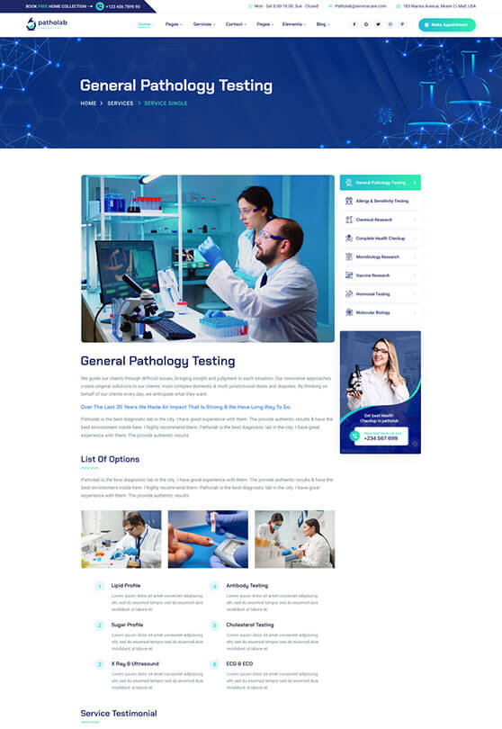 Patholab’s provides 4 service page styles layouts from where you can choose the best one for your website