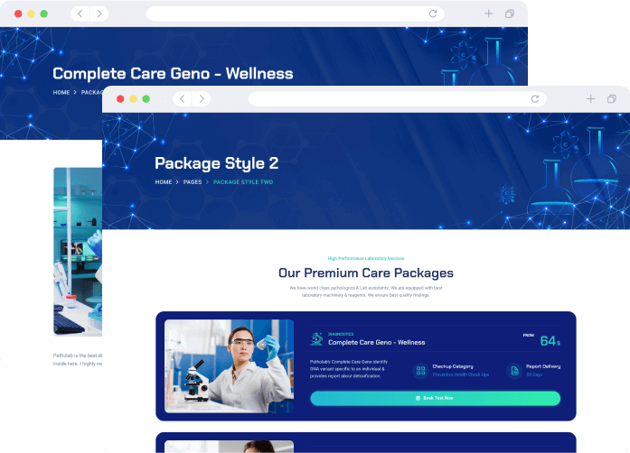 Patholab’s provides 4 package page styles layouts from where you can choose the best one for your website