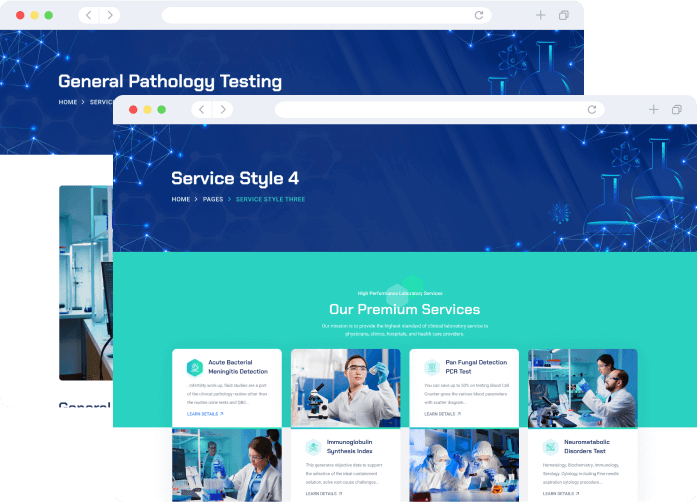 Patholab’s provides 4 service page styles layouts from where you can choose the best one for your website